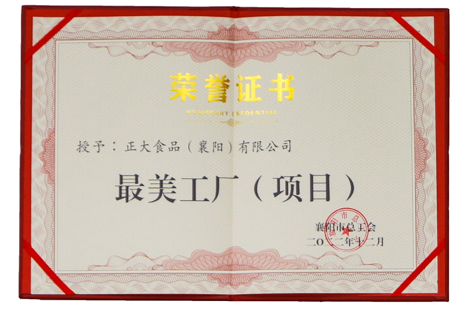 為廣泛開展美好環(huán)境與幸福生活共同締造活動(dòng),評(píng)選為襄陽(yáng)市經(jīng)濟(jì)社會(huì)高質(zhì)量發(fā)展做出積極貢獻(xiàn)的單位和群體及個(gè)人,襄陽(yáng)市總工會(huì)開展了尋找襄陽(yáng)市“最美職工(工匠)、最美工廠(項(xiàng)目)、最美班組(窗口)”的活動(dòng)。歷時(shí)2個(gè)月的多輪評(píng)定,襄陽(yáng)市總工會(huì)決定授予正大食品(襄陽(yáng))有限公司——襄陽(yáng)市“最美工廠(項(xiàng)目)”獎(jiǎng)項(xiàng)。